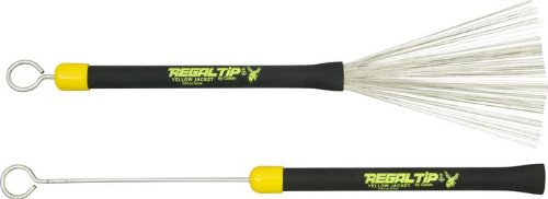 Brush playing is an art form that has gained popularity again in recent times. Brushes add limitless versatility to your playing. The Regal Tip Yellow Jacket Telescopic Brush is a first quality brush with an economic price tag. Wires store inside handle. The retractable brush handle protects the brush wire. Just like the tip on a stick, the wire on your brush is the part of your playing tool that creates the sound on the head or cymbal. Regal Tip set the industry standard in design and reliability of fixed and adjustable spread brushes. You will feel the difference with Regal Tip brushes.